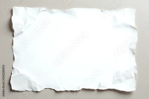 White wrinkled poster template. Glued paper mock up. Blank wheat paste on textured wall. Empty street art sticker mock up in frame. Clear urban glued advertising canvas.
