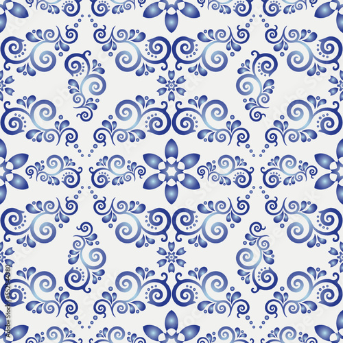 White-and-blue elegance seamless geometric gradient floral pattern in style gzhel , vector