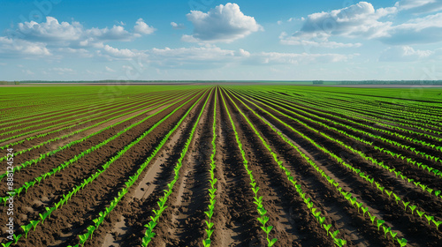 Wide shot of a field with rows of crops being prepared for winter, autumn fertilizer spread evenly
