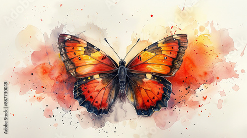 wide watercolour drawing illustration of beautiful butterfly with colorful wings draw on white color background