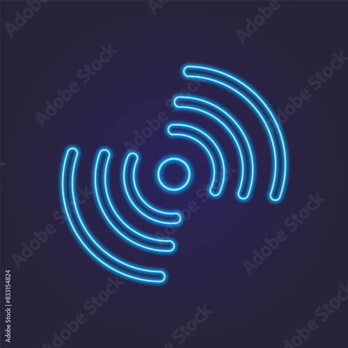 Wi-Fi symbol with neon effect, blue. Internet waves