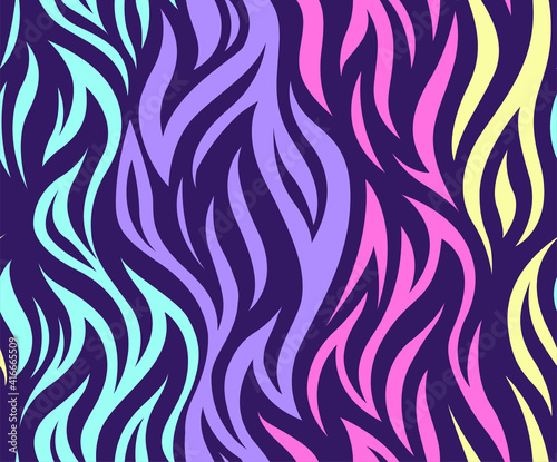 Wild exotic Zebra fire stripes repeat pattern. Seamless vector rotary print textile design.
