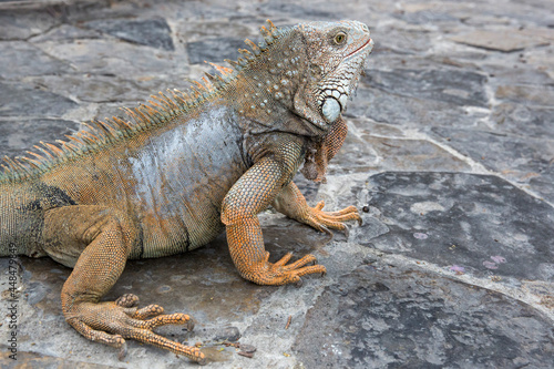 Wild iguana as seen in Parque seminario, also known as Parque de las Iguanas (Iguana Park) in Quito, Ecuador.