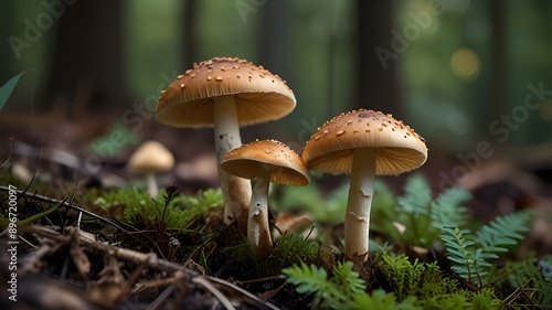 Wild mushrooms growing in nature Generative AI