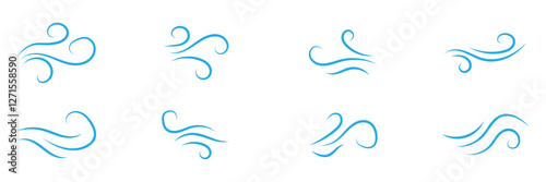 Wind set of vector icons. Blue wind lines. Blowing wind vector icon. Simple wind vector icon.
