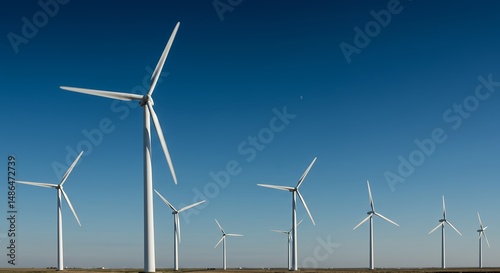 Wind turbines array against clear blue sky harnessing renewable resources and sustainable power