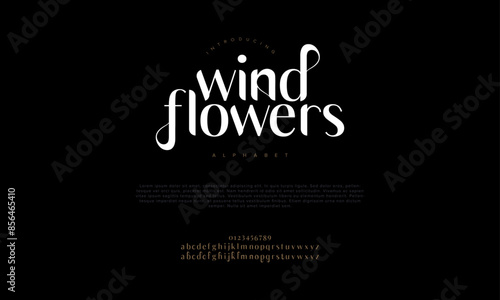 Windflowers premium luxury elegant alphabet letters and numbers. Vintage wedding typography classic serif font decorative vintage retro. creative vector illustration