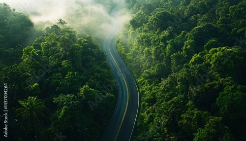 Winding road through lush forest