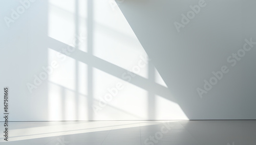 Window casting a shadow on a white wall. Geometric Light and Shadow Play. Minimalist Window Shadow on the empty room.