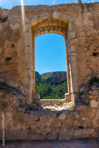 Window of the castle of the town of Chulilla in the mountains of the Valencian community. Spain