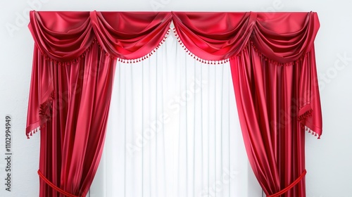 Window Red Curtain on White Background - A Striking and Elegant Interior Element. The Rich Red Curtain Hanging by the Window on the Pure White Background, with Its Soft Fabric and Graceful Drape,