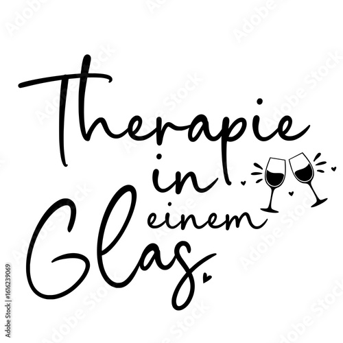 Wine quote Wine o'clock Wine lover, gift German quote Therapy in a glass