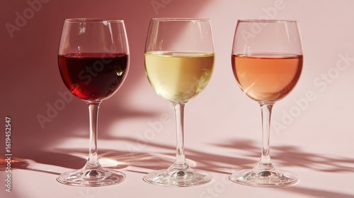 Wine tasting red, white and ros? on a pink background. Sommelier, party, bar menu