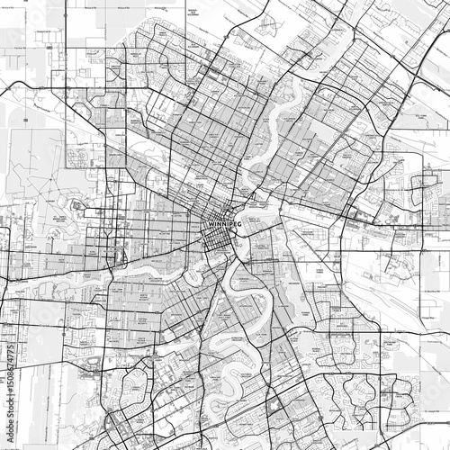 Winnipeg Area Map with Labels and Neighborhoods - One color, minimalistic design