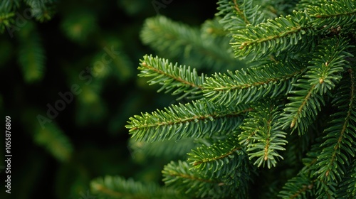 Winter background featuring beautiful green fir tree branches Close up of spruce needles Nature inspired winter banner with ample copy space for text