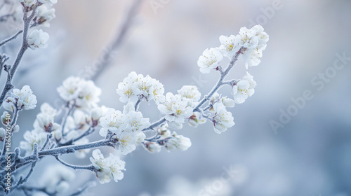 Winter blossoms covered in frost create a serene and enchanting atmosphere in nature