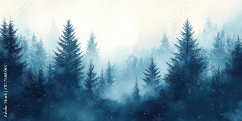 Winter Forest Landscape, Realistic Evergreen Trees in Misty Scenery, for Travel and Nature Photography