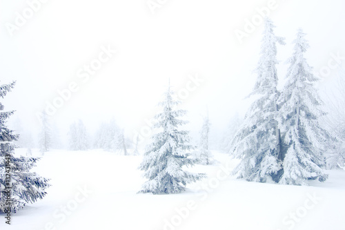 winter forest with snow and frost