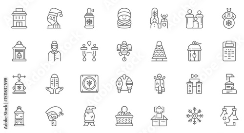 winter icons, set of line icons, icon sheet