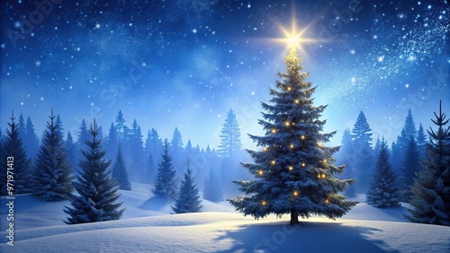Winter landscape of a Christmas tree with snow in the forest Silhouette