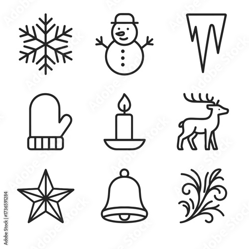 Winter mitten frost pattern vector snowflake star icons christmas set icon snowman