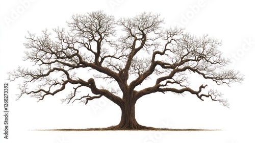 Winter oak tree, isolated on white background, nature illustration, website design