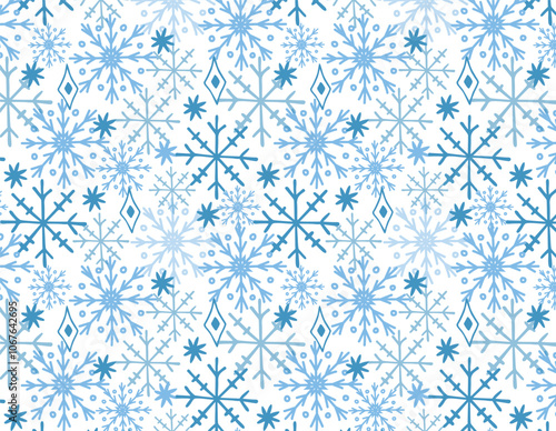 Winter pattern with snowflakes, vector seamless background with blue snowflakes. It is suitable for decorating the New Year and Merry Christmas.