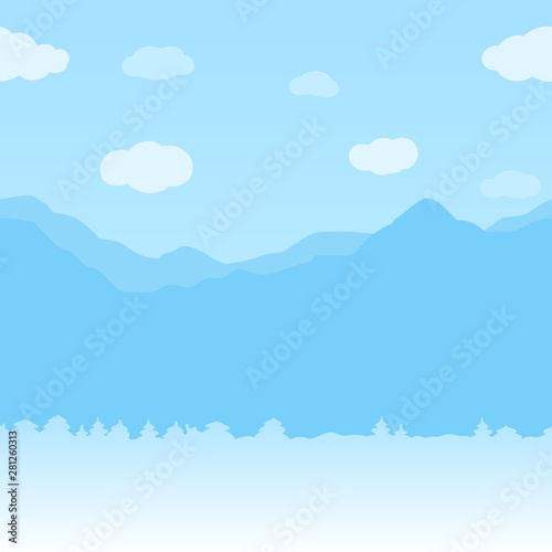 Winter seamless horizontal background with mountains and snow daylight flat style. Winter landscape.