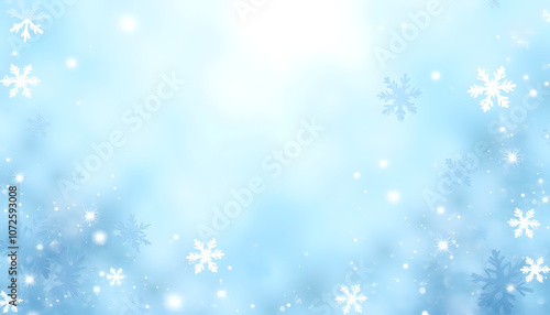 Winter snowflakes background with soft blue tones and sparkling effects in serene atmosphere copy space