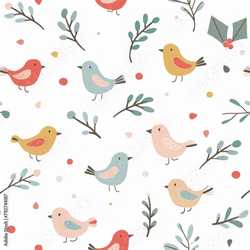 Winter Whimsy: Birds & Holly in Festive Seamless Pattern - Generative AI