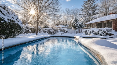 Winter Wonderland Backyard Pool Scene Peaceful Snow Covered