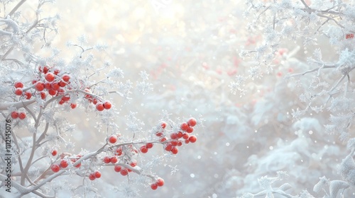Winter Wonderland: Close-up of Intricate Snowflakes on Vibrant Red Berry in Snowy Forest - Ultra-Detailed Nature Scene