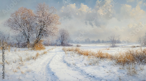 Winter’s First Snow – A quiet morning, where the first snow of the season falls gently onto the ground, blanketing everything in a soft, pristine layer of white.