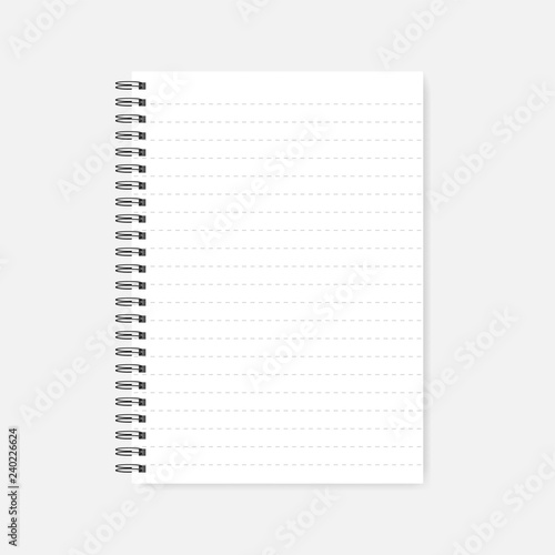 Wire spiral dashed lined A4 notebook, realistic vector mock-up