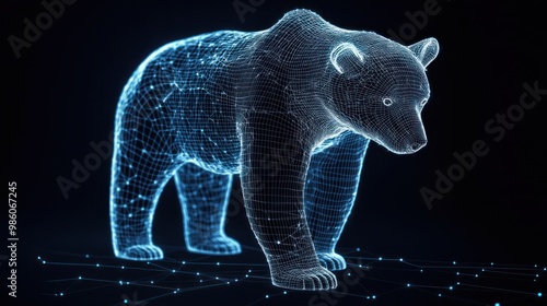 Wireframe 3D Render of a Bear with Glowing Blue Lines and Dots.