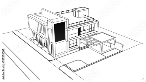 Wireframe of house. Wireframe perspective. 3D wireframe building.