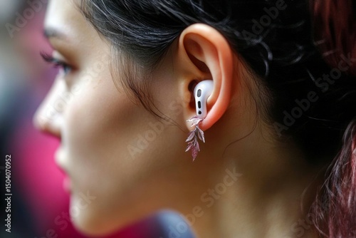 Wireless Audio Experience. close-up view of an ear wearing an airpod