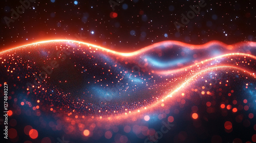wireless data transmission and high-speed internet. Neural network in cyberspace symbolizes the flow of information, big data, cybersecurity, and AI. Modern, bright tones