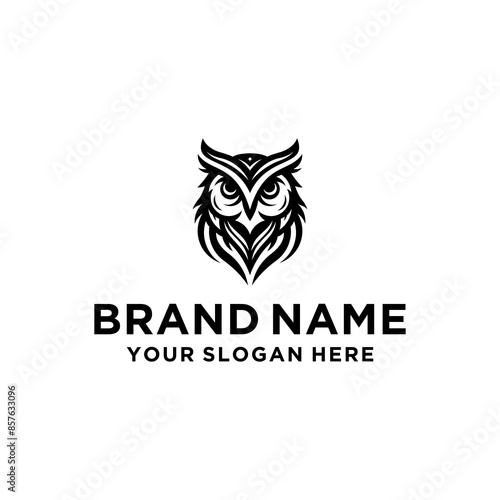 Wise Owl Logo Design. Wise Owl Vector Illustration on Black and White Background. Icon Emblem for Company Branding. Tattoo Art Style. Symbol of Wisdom and Knowledge.