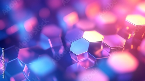 With hexagonal patterns, the iridescent abstract geometric shapes exude a soft glow, forming a shimmering