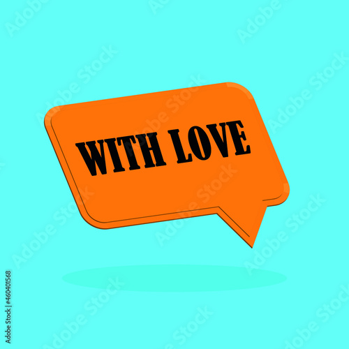 With love inscription. Black vector text in speech bubble. Simple outline marker style. Imitation of conversation.