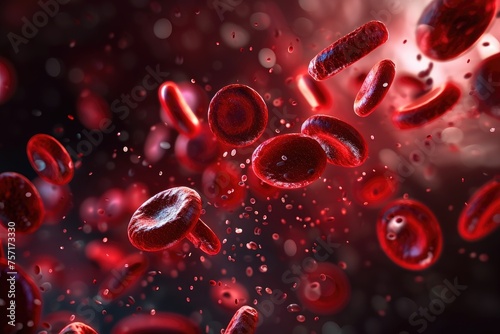 Witness an intriguing phenomenon as a cluster of red blood cells defies gravity and hovers in the atmosphere, A high-contrast, dramatic rendering of a cluster of red blood cells, AI Generated