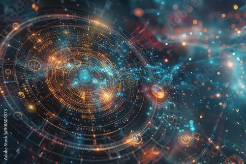 Witness the harmony of colors as mathematical equations come from an abstract background.