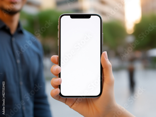 Woman and man use a smartphone with a blank screen for lifestyle tech
