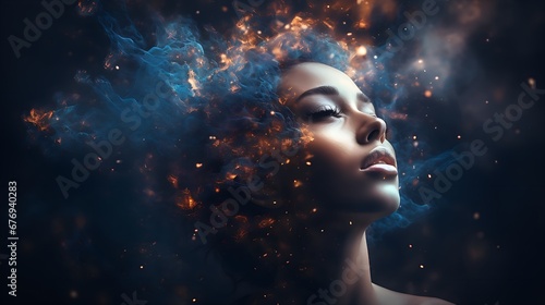 Woman developing her emotional intelligence. Concept exploring the mind, self-discovery, introspection, thinking process.