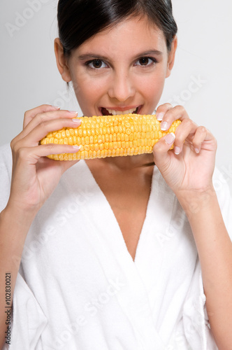 Woman eating corn