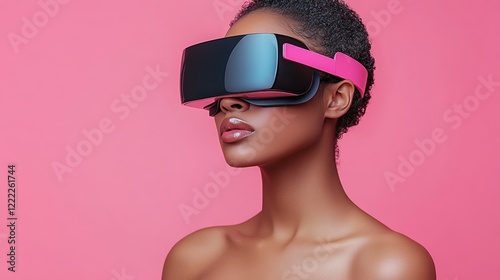 Woman Experiencing Virtual Reality in a Futuristic Setting