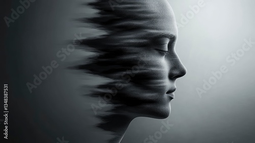 Woman Face Profile with Abstract Overlay in Black and White Style
