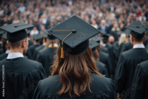 woman in a graduation cap and gown standing in front of a crowd11