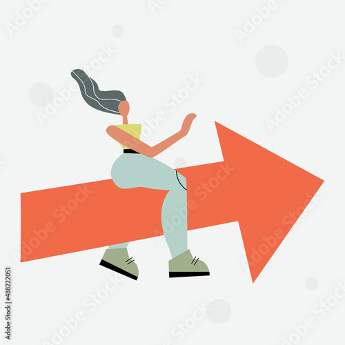 Woman sitting on the arrow. Picture depicts growth for presentations, diagrams, graphs. Vector drawing with modern character.